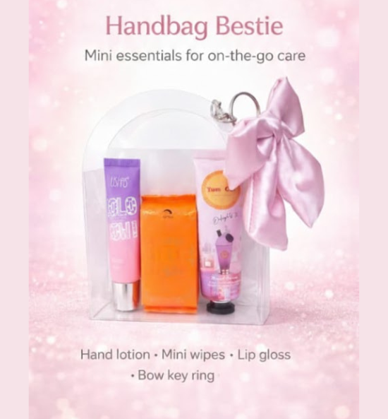 Signature Bow Key Ring: A chic, satin-finish pink bow that adds a touch of feminine flair to your favorite handbag or keys.